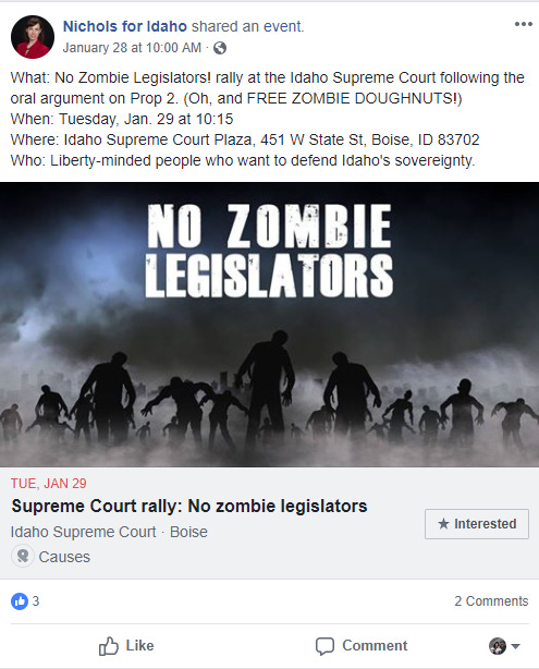 This was a campaign started by the Idaho Freedom Foundation and related to the failed lawsuit they filed, quite unsuccessfully, to overturn the Medicaid expansion proposition.