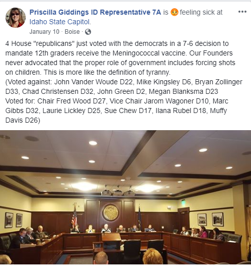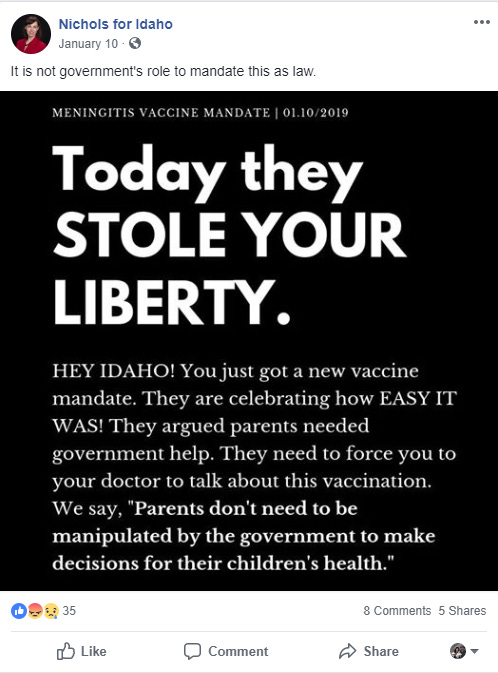 Representative Nichols shared Health Freedom Idaho’s dishonest post here: